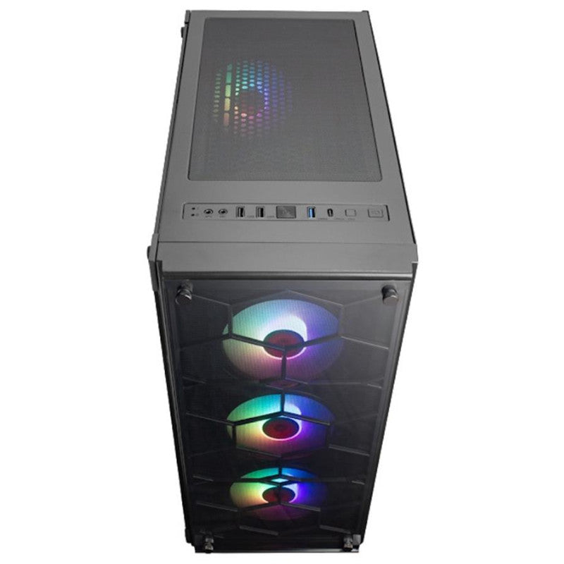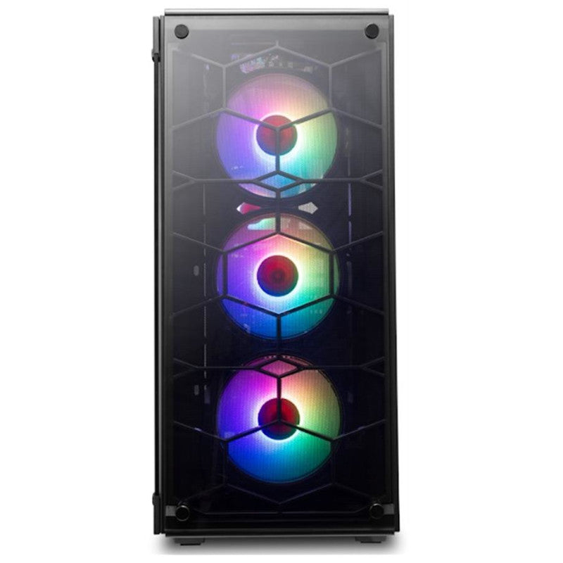 - Materiales: Chasis de acero SPCC de 0,7 mm, plástico ABS y panel lateral de vidrio templado de 4 mm.