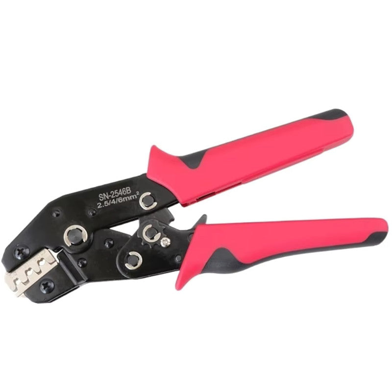 Herramienta de crimpado tipo trinquete especializada en terminales solares fotovoltaicos MC3/MC4. Comprime cables de 2.5mm² a 6mm² (AWG 14-10) con precisión profesional, garantizando conexiones eléctricas seguras y duraderas en sistemas fotovoltaicos. Su mecanismo de trinquete asegura presión uniforme en cada operación, eliminando conexiones defectuosas y optimizando el rendimiento de instalaciones solares. Ideal para técnicos e instaladores que requieren resultados confiables y consistentes.